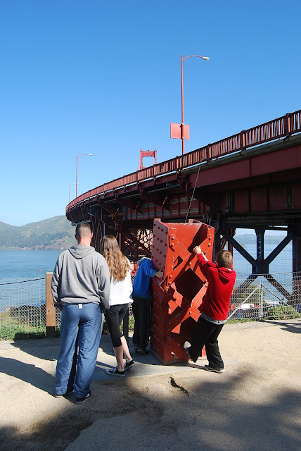 The road trip up the coast was meant to end in San Francisco. When we got to Monterey we were enjoying the beach so much we were debating skipping the city all together. The main reason I wanted to go into San Fran was for an Alcatraz tour and they were sold out. I offered up the vote--San Fran or more beach outdoorsy stuff. The kids surprisingly said the city. So, I started researching teen appropriate activities they would enjoy. When I stumbled on the opportunity to walk across the Golden Gate bridge, I hesitated to share the news with my family. My brain was screaming earthquake and terrorist attack! I just stuffed it down and casually mentioned "this thing where you could, like, walk across the bridge" and everyone was like Yeah!!!
